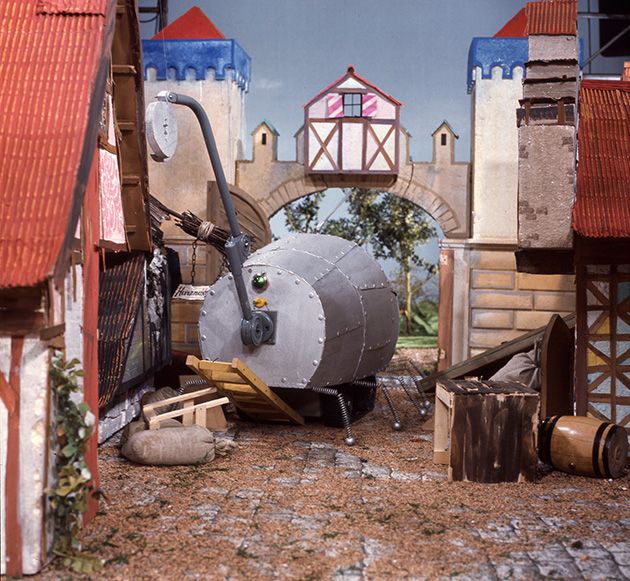 Hans bekämpft Technik mit Technik. Mit einem Bagger greift er die Roboter erfolgreich an und treibt sie in die Flucht.