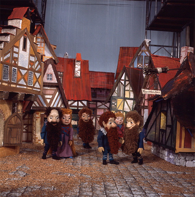 In einer Parade begleiten die Bärte den Admiral, Hans und Bärbel zum Schloss.